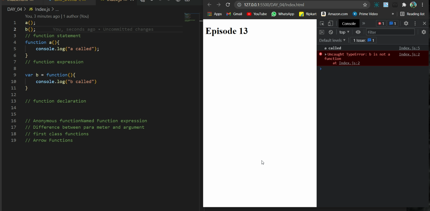 Anonymous function are used in a place where functions can be used as values like we used in previous example i:e var b= function(){ }